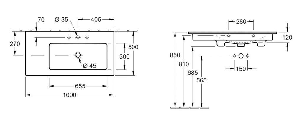 Nábytkové umyvadlo s odkládací plochou vlevo