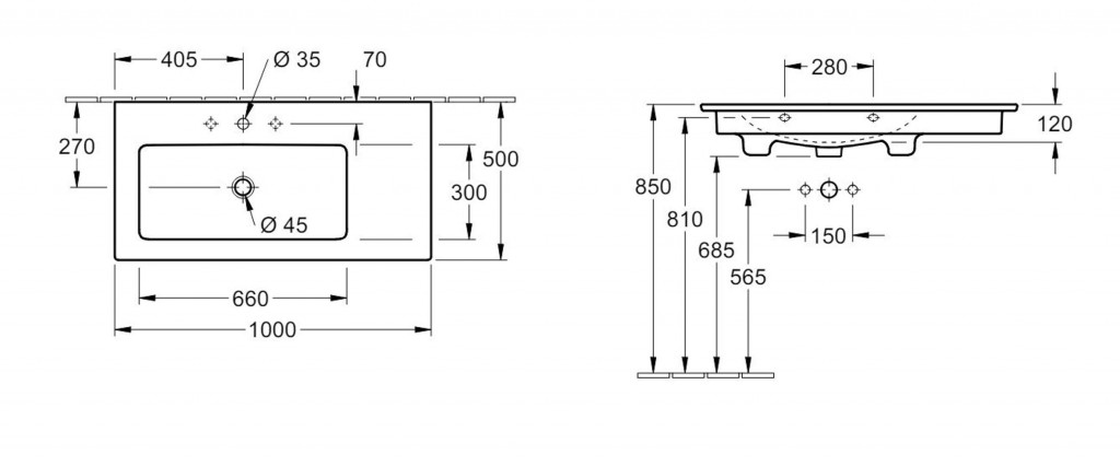 Nábytkové umyvadlo s odkládací plochou vpravo
