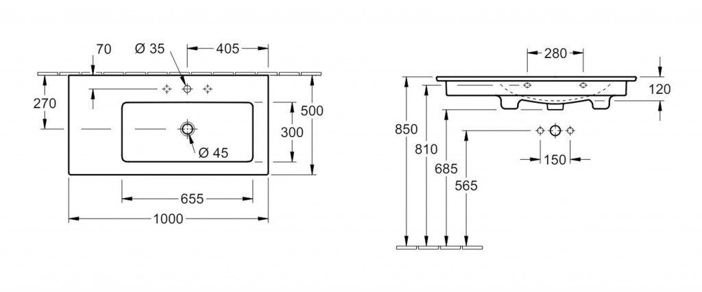 Nábytkové umyvadlo s odkládací plochou vlevo