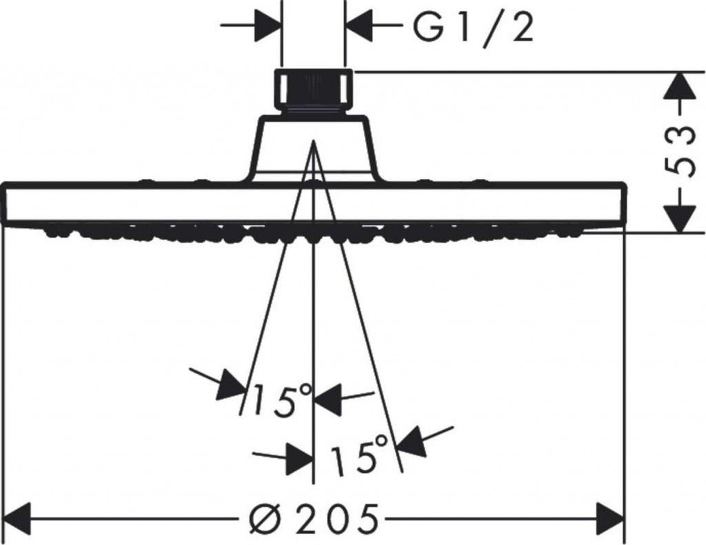 Instalace na sprchové rameno nebo přívod od stropu, není součástí dodávky.