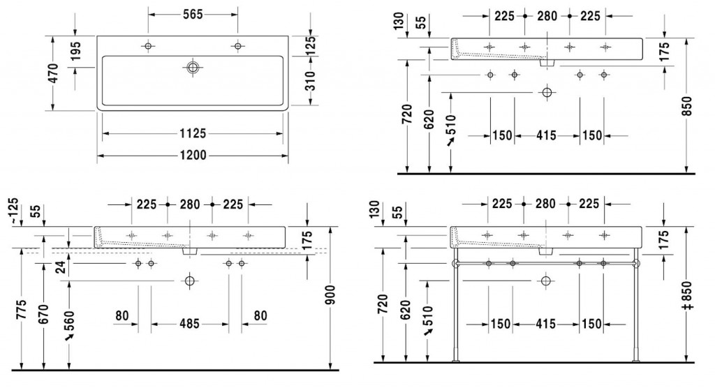 Pro umyvadla délky 1000 mm a více je zapotřebí použít 2 sady pro upevnění (není součástí dodávky).
