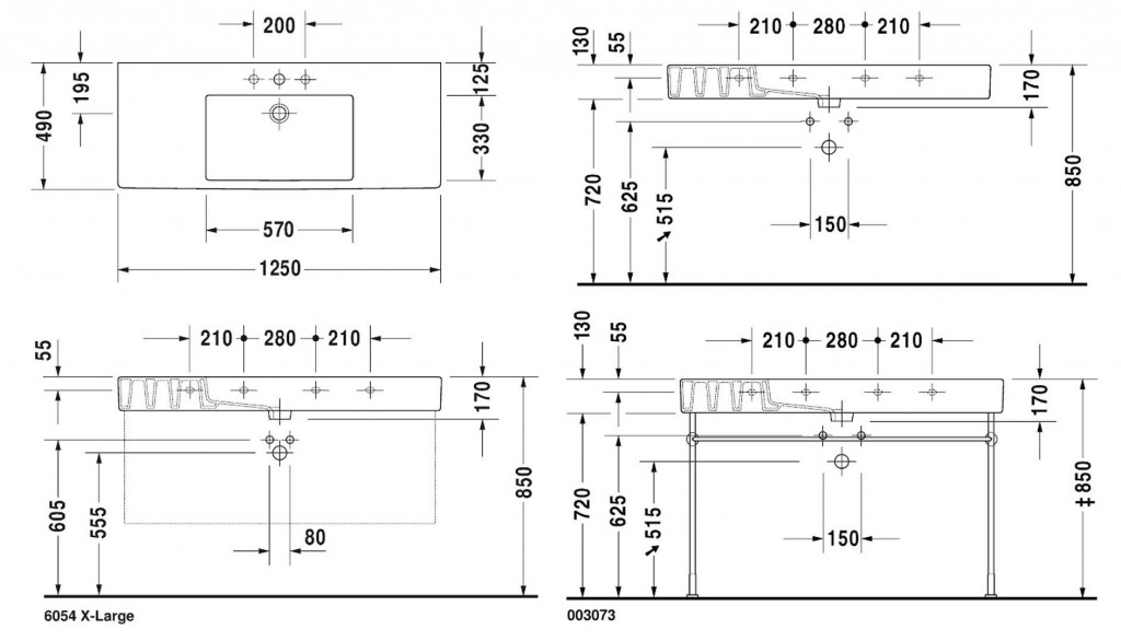 Pro umyvadla s délkou 1000 mm a větší je zapotřeba použít 2 sady pro upevnění.