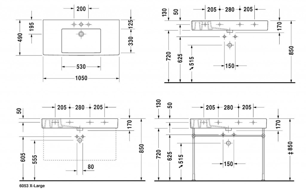 Pro umyvadla s délkou 1000 mm a větší je zapotřebí použít 2 sady pro upevnění.