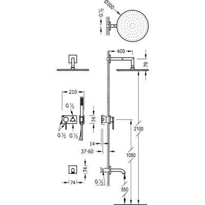 - Pevná sprcha průměr 300 mm. s kloubem