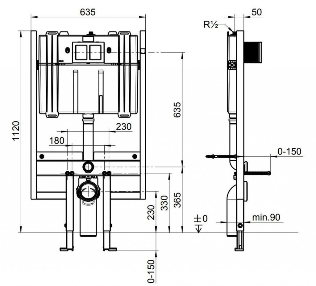 - rozsah nastavení přední hrany prvku ke zdi: min. 90 mm, s nádržkou 80 mm