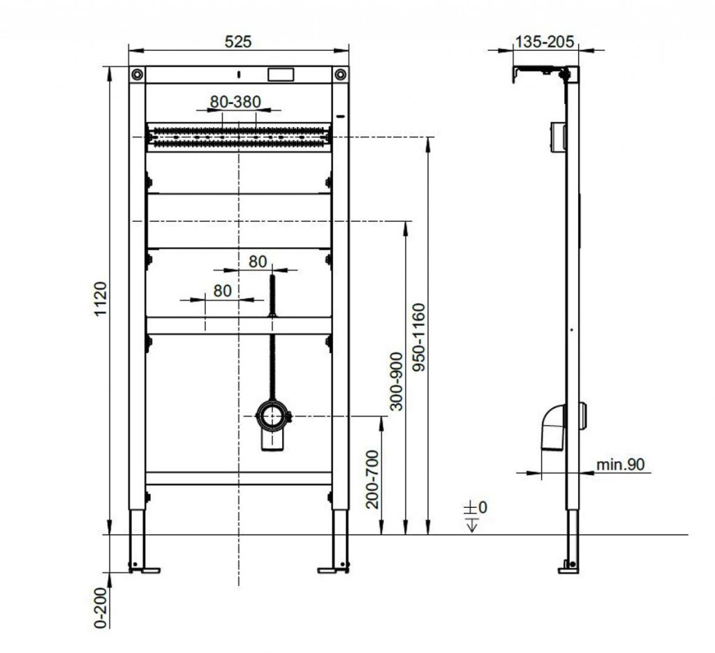 - rozsah nastavení noh od hrubé podlahy po hotovou podlahu: 0 – 200 mm