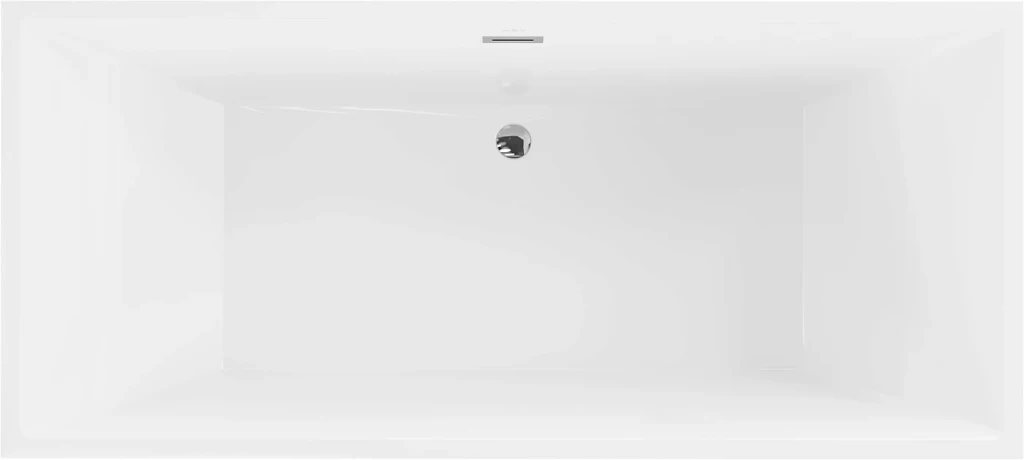 Volně stojící obdélníková akrylátová vana série VIGO od výrobce MEXEN s přepadem a umístěném odpadu na středu vany.