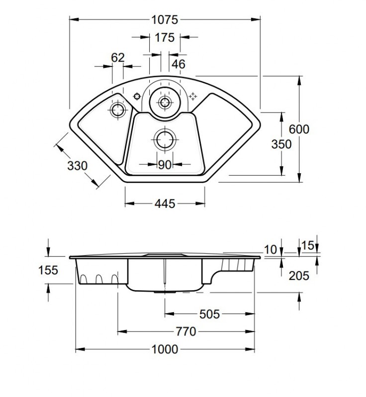 - dřez je určen pro horní montáž