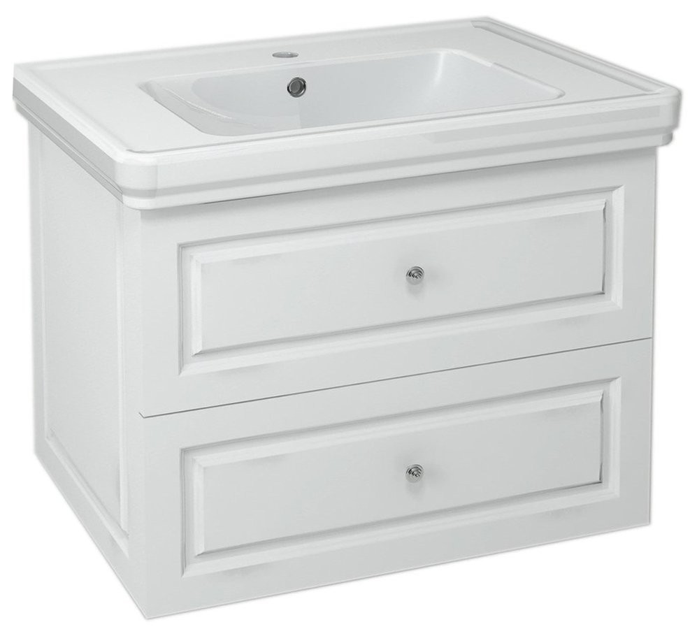 Skříňky VIOLETA ve vintage stylu s plastickým dekorem na zásuvkách i korpusu, doplněné úchytkou s krystalem SWAROVSKI, jsou vyráběny v bílém pololesklém provedení.