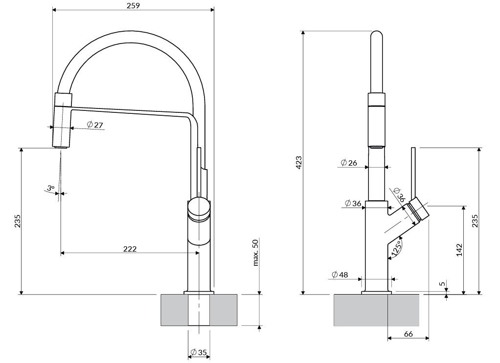 Kuchyňská baterie OMNIRES VITA kombinuje vytříbený tvar s vynikající funkčností. Její moderní, minimalistický design je založen na geometrických tvarech oblouku a vytváří lehkou a vizuálně ucelenou siluetu. Otočný výtok s funkcí sprchy lze oddělit, což umožňuje přesný průtok vody, kamkoli je to potřeba. Flexibilní černá gumová část a optimální výška baterie usnadňuje každodenní používání. Tento model je vybaven vysoce kvalitní keramickou kartuší a inovativními technologickými řešeními, která snižují spotřebu vody na polovinu a zároveň zajišťují pohodlí a snadné používání.