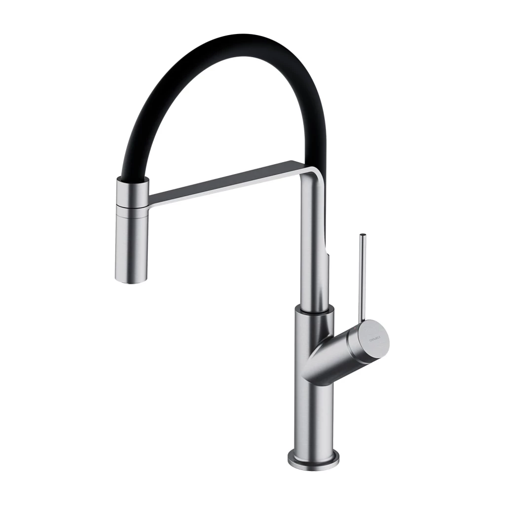 Kuchyňská baterie OMNIRES VITA kombinuje vytříbený tvar s vynikající funkčností. Její moderní, minimalistický design je založen na geometrických tvarech oblouku a vytváří lehkou a vizuálně ucelenou siluetu. Otočný výtok s funkcí sprchy lze oddělit, což umožňuje přesný průtok vody, kamkoli je to potřeba. Flexibilní černá gumová část a optimální výška baterie usnadňuje každodenní používání. Tento model je vybaven vysoce kvalitní keramickou kartuší a inovativními technologickými řešeními, která snižují spotřebu vody na polovinu a zároveň zajišťují pohodlí a snadné používání.