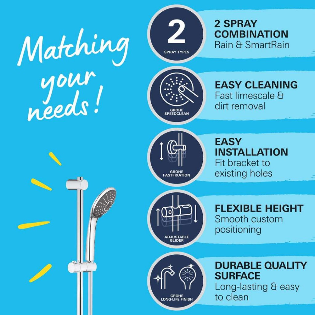 - GROHE QuickFix horní držák nastavitelný pro přizpůsobení existujících otvorů