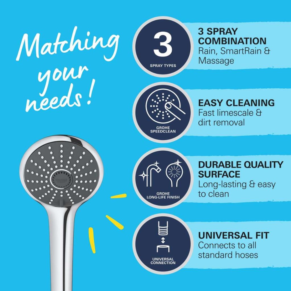 - 3 sprchové proudy: Rain, Massage, SmartRain