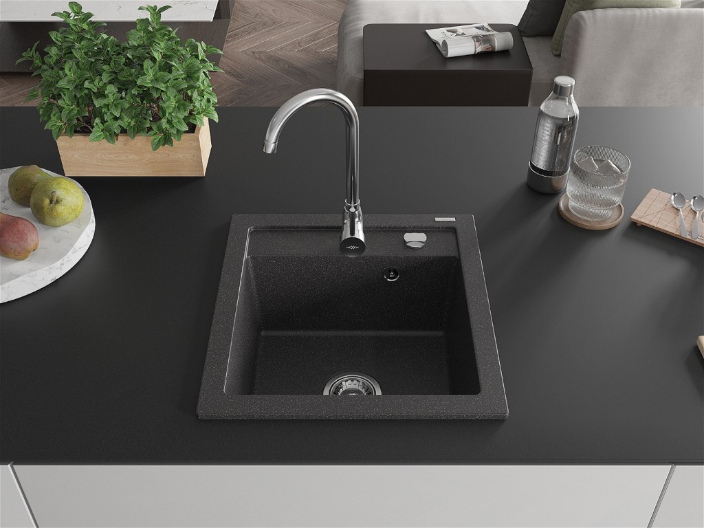 Speciální složení materiálu použitého pro výrobu je žula (80% žula – kámen, 20% pryskyřice) a jeho vysoká hustota garantuje bezpečné používání výrobku, a proto jsou granitové dřezy tak oblíbené. Díky povrchové úpravě nejsou na granitovém dřezu vidět zaschlé kapky, je odolný vůči skvrnám a neztrácí barvu. Povrch je odolný vůči nárazu, poškrábání, změně barvy, vysoké teplotě a teplotním šokům. Při jejich údržbě se používají obvyklé čistící, prostředky nebo prostředky na nádobí s jemným abrasivem. Výhodou je rozmanitá barevná nabídka.