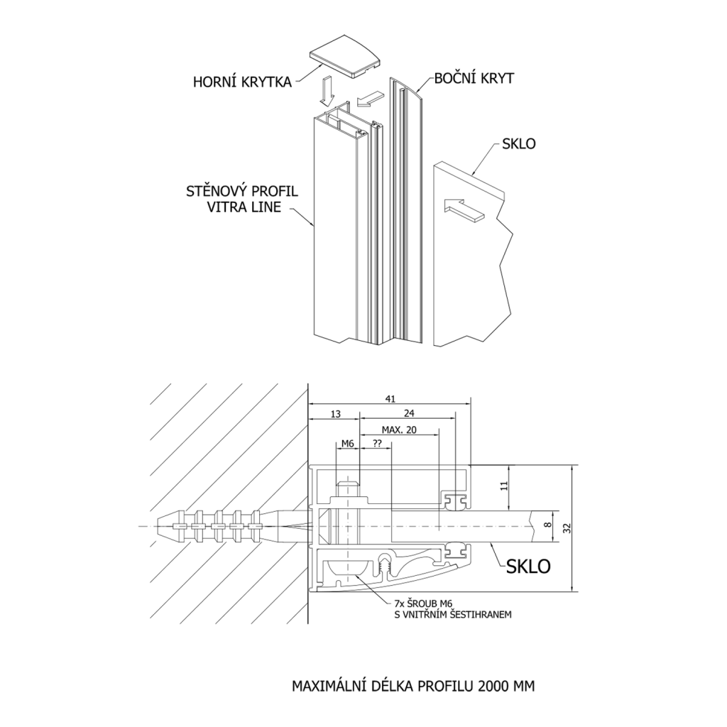 Stěnový profil z leštěného hliníku pro sklo o tloušťce 8mm jistě najde široké uplatnění nejen v koupelně. Díky jedinečné konstrukci není sklo uchyceno v profilu a lze ho posunout v rozmezí 0-20 mm. Po usazení koutu na vaničku či podlahu se sklo pevně sevře a instalační šroub je zakryt elegantní ozdobnou lištou.