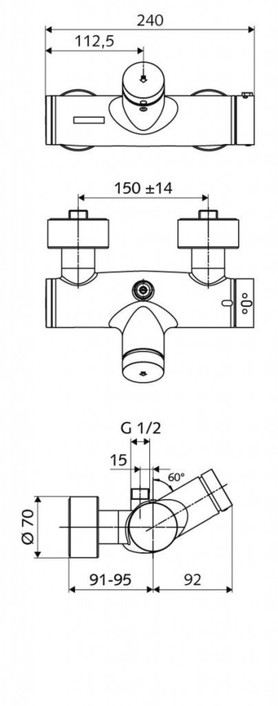 - termostatická kartuše podle EN 1111 s nastavitelným omezením teploty na 38 °C a pojistkou při výpadku studené vody