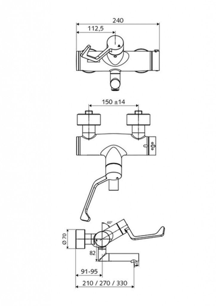 - ovládání pákou - ergonomické pákové rameno pro kliniky, 153 mm