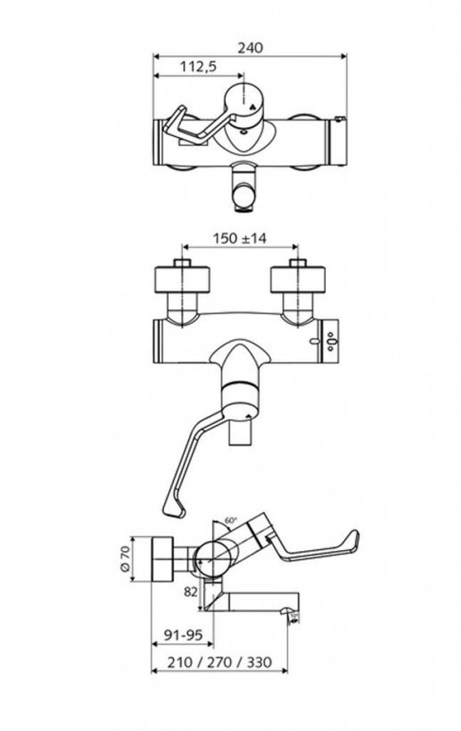 - ovládání pákou - ergonomické pákové rameno pro kliniky, 153 mm
