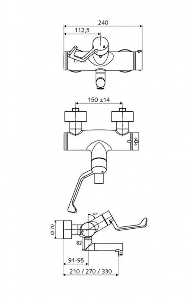 - ovládání pákou - ergonomické pákové rameno pro kliniky, 153 mm