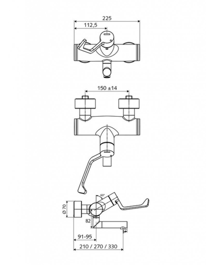 - ovládání pákou - ergonomické pákové rameno pro kliniky, 153 mm