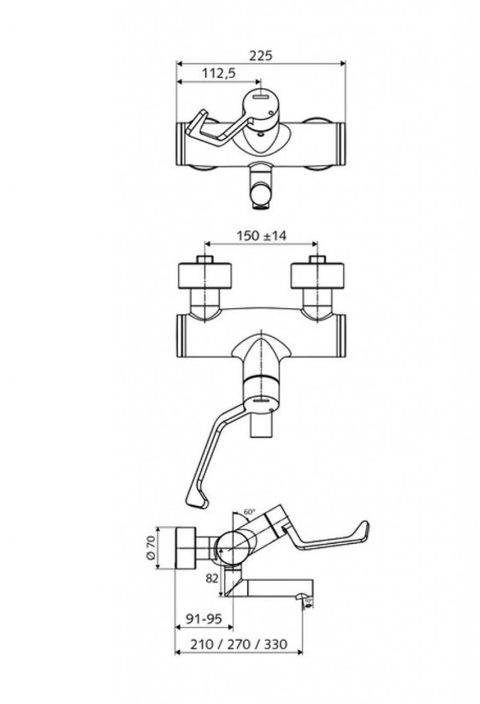 - ovládání pákou - ergonomické pákové rameno pro kliniky, 153 mm