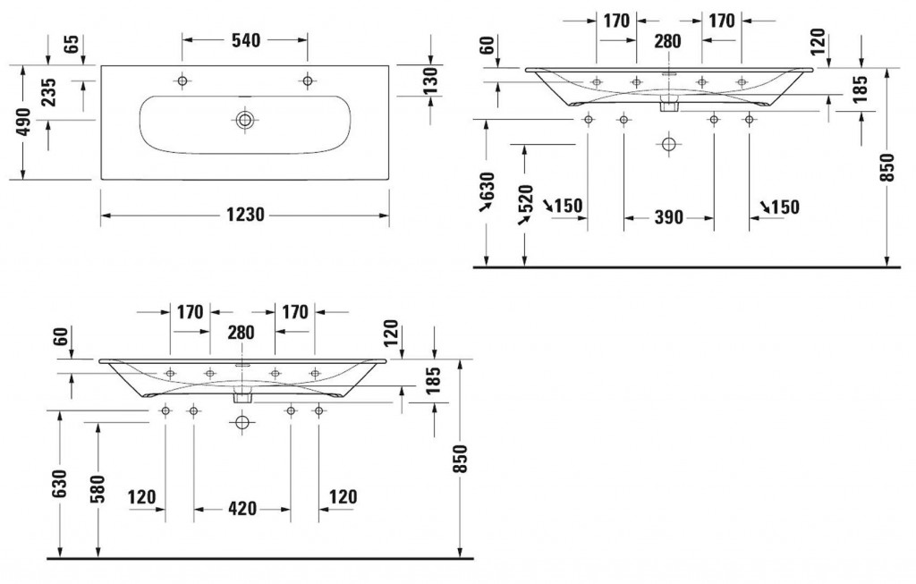 K upevnění keramického umyvadla délky větší než 1200 mm je třeba použít 2 upevňovací sety pro umyvadlo.