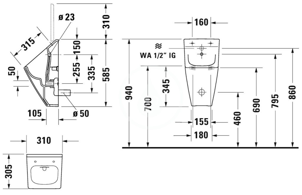 Pro instalaci je nezbytně nutné použít sifon 0051120000, který je třeba objednat zvlášť. Pouze ve spojení s regulovatelnými UP tlakovými splachovači.
