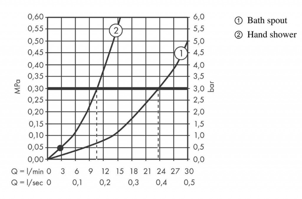 - průtok sprchy: 9,5 l/min (tlak 3 bar)