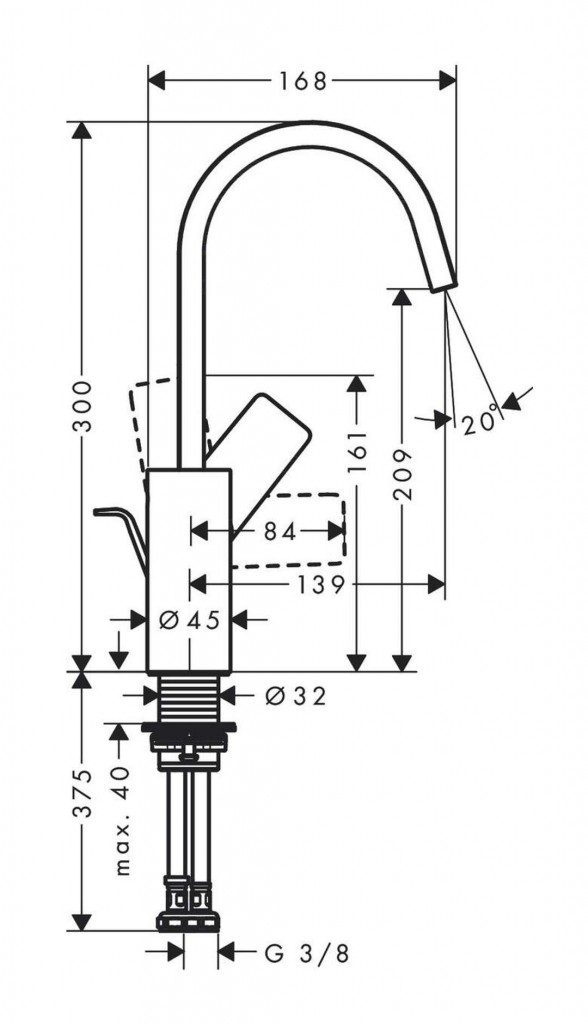 Stojánková umyvadlová baterie Vivenis 210 s otočným výtokem