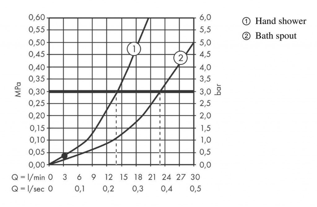 - průtok sprchy: 13,4 l/min (tlak 3 bar)