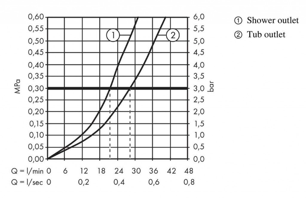 - průtok horní výstup: 21 l/min (tlak 3 bar)