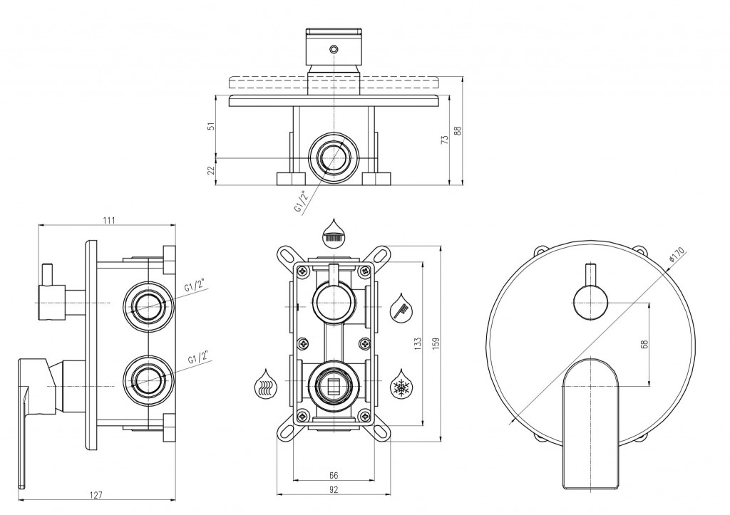 Tuto baterii můžete použít buď do sprchového koutu jako kombinaci hlavové a ruční sprchy a nebo k vaně jako kombinaci např. napouštění přepadem a ruční sprcha nebo výtokové ramínko a ruční sprcha.