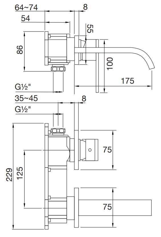 Nástěnná umyvadlová baterie bez montážního tělesa, chrom (135 1804)
