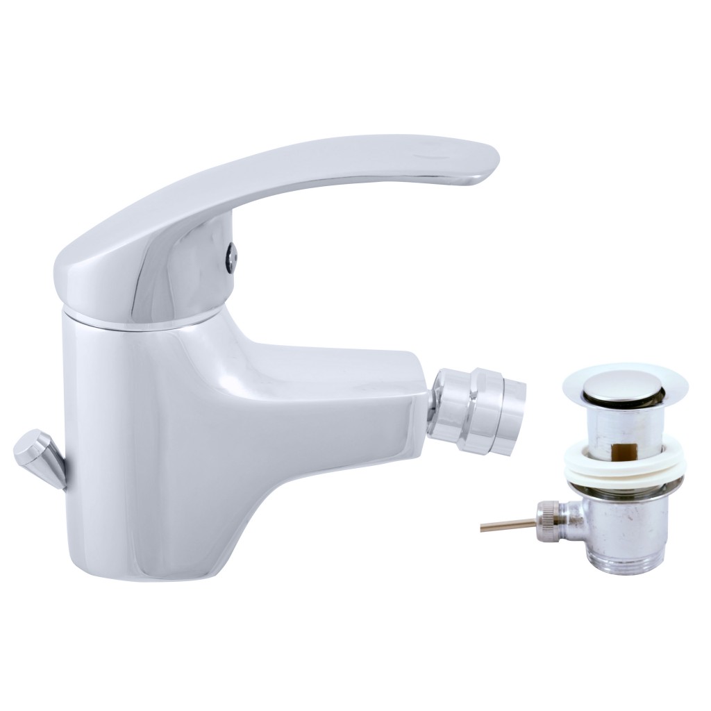 Vodovodní baterie bidetová stojánková s otvíráním odpadu.