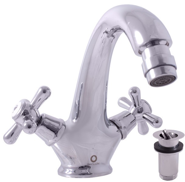 Vodovodní baterie bidetová stojánková s výpustí s výklopnou zátkou.
