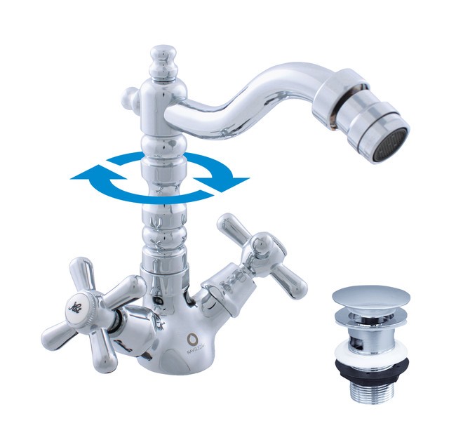 Vodovodní baterie bidetová stojánková s otočným ústím s výpustí CLICK-CLACK.