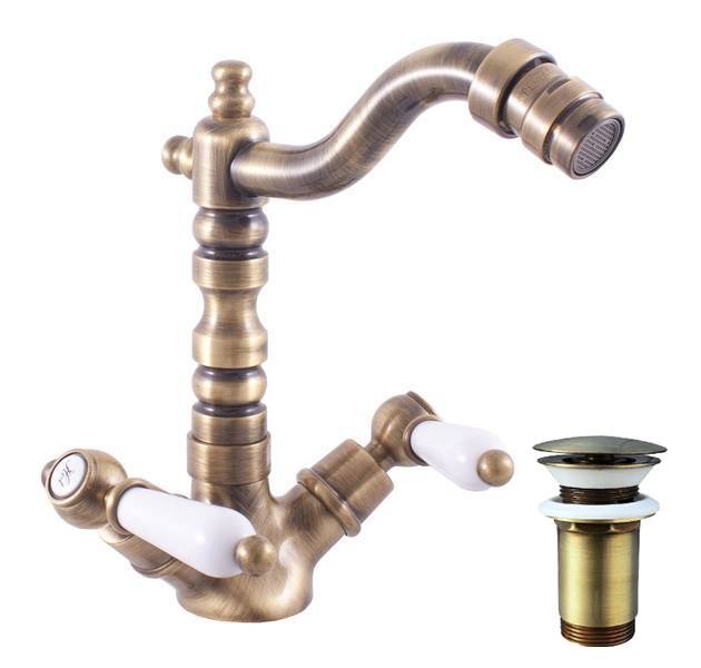Vodovodní baterie bidetová stojánková s otočným ústím, včetně výpusti click-clack.