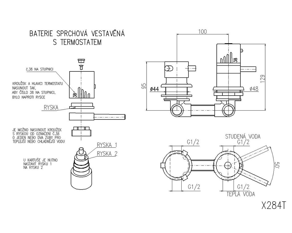 Vodovodní baterie do boxů s dvoucestným ventilem termostatická.