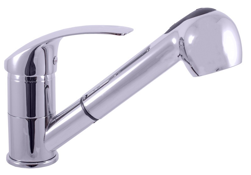 Vodovodní baterie dřezová stojánková s vytahovací sprchou.