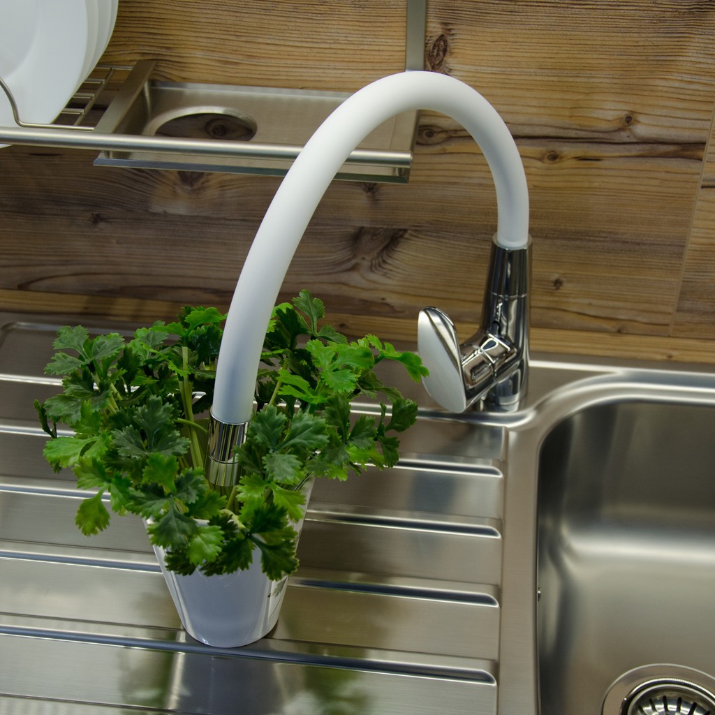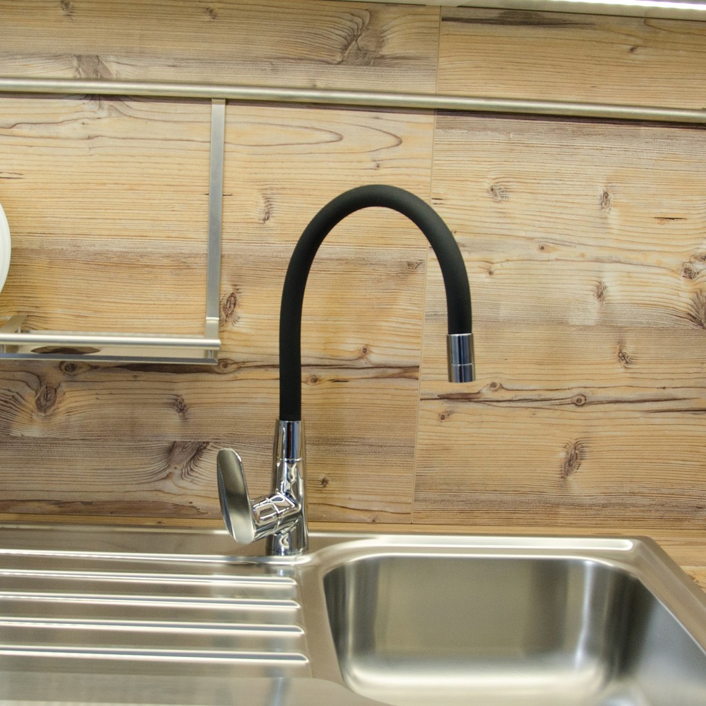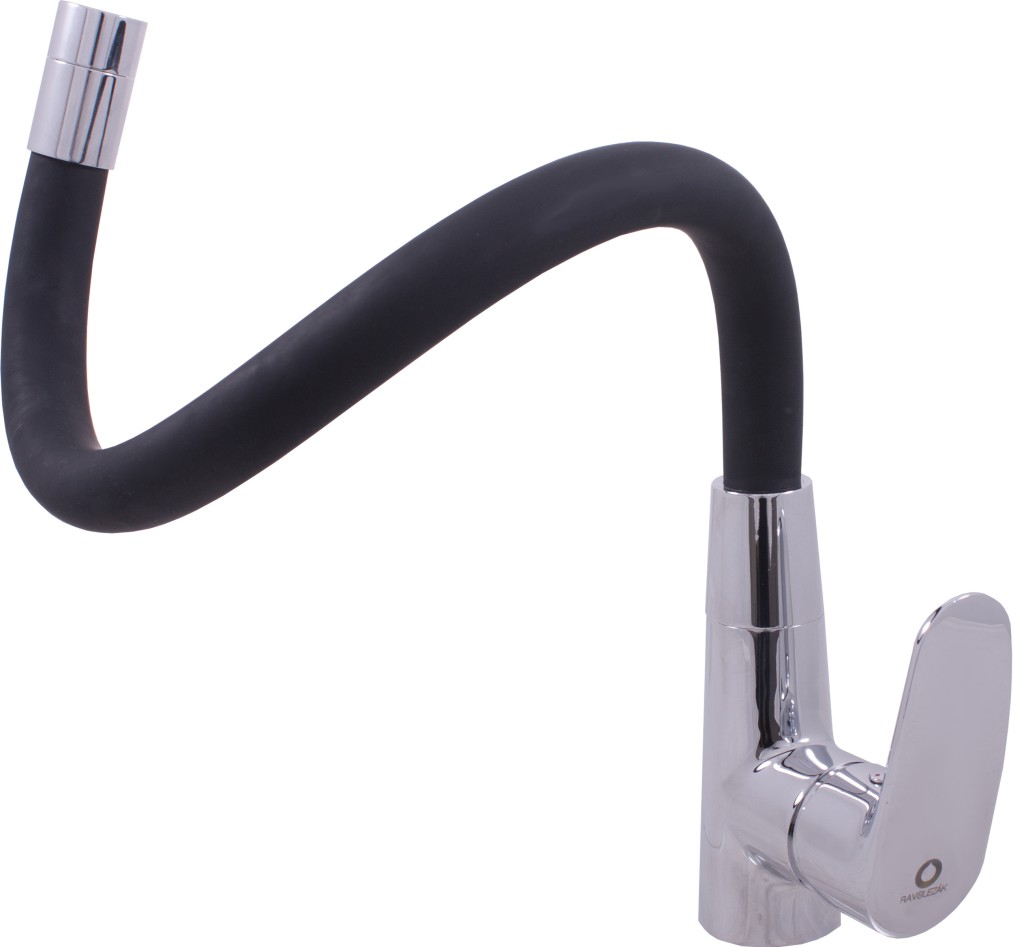 Vodovodní baterie dřezová stojánková s flexibilním otočným ramínkem.