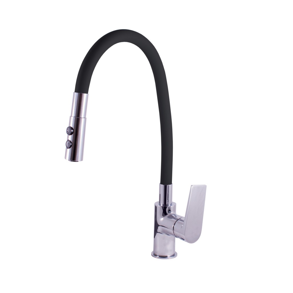 Vodovodní baterie dřezová stojánková s flexibilním otočným ramínkem se sprchou.