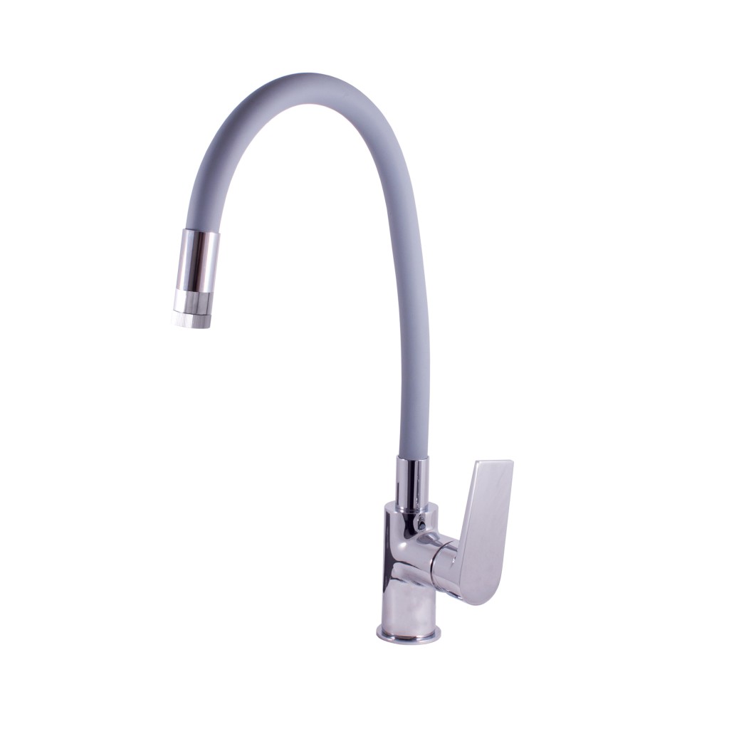 Vodovodní baterie dřezová stojánková s flexibilním otočným ramínkem s dvoupolohovým perlátorem.
