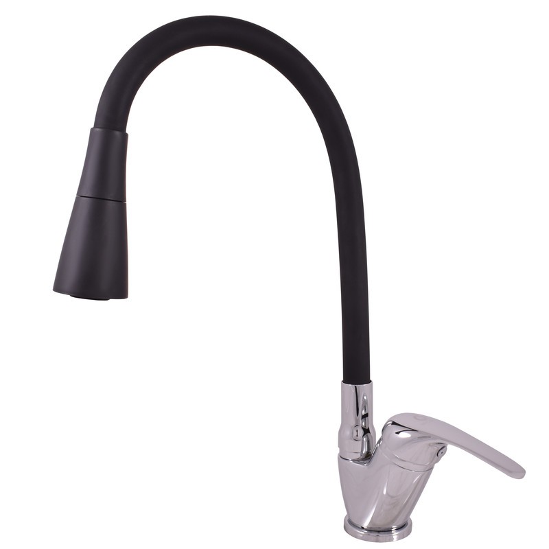 Vodovodní baterie dřezová stojánková s flexibilním otočným ramínkem se sprchou.
