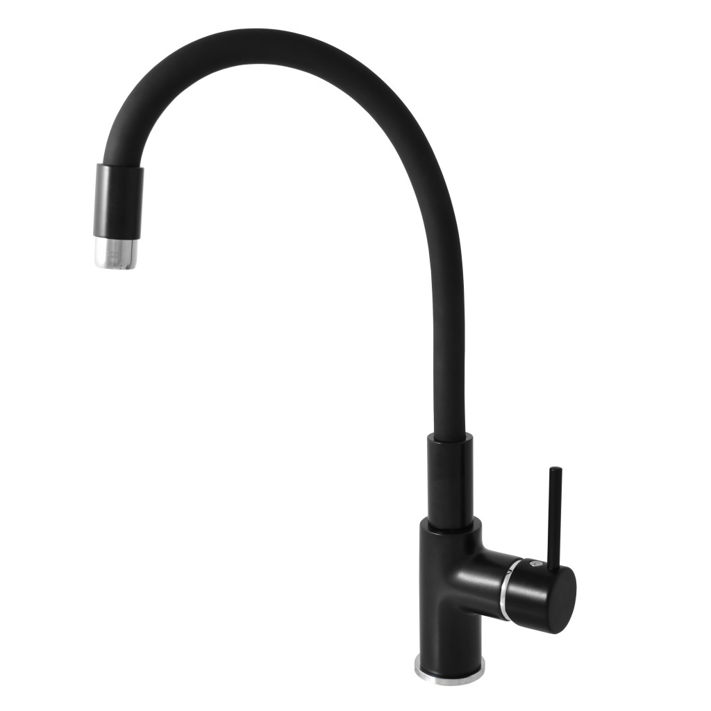 Vodovodní baterie dřezová stojánková s flexibilním otočným ramínkem.