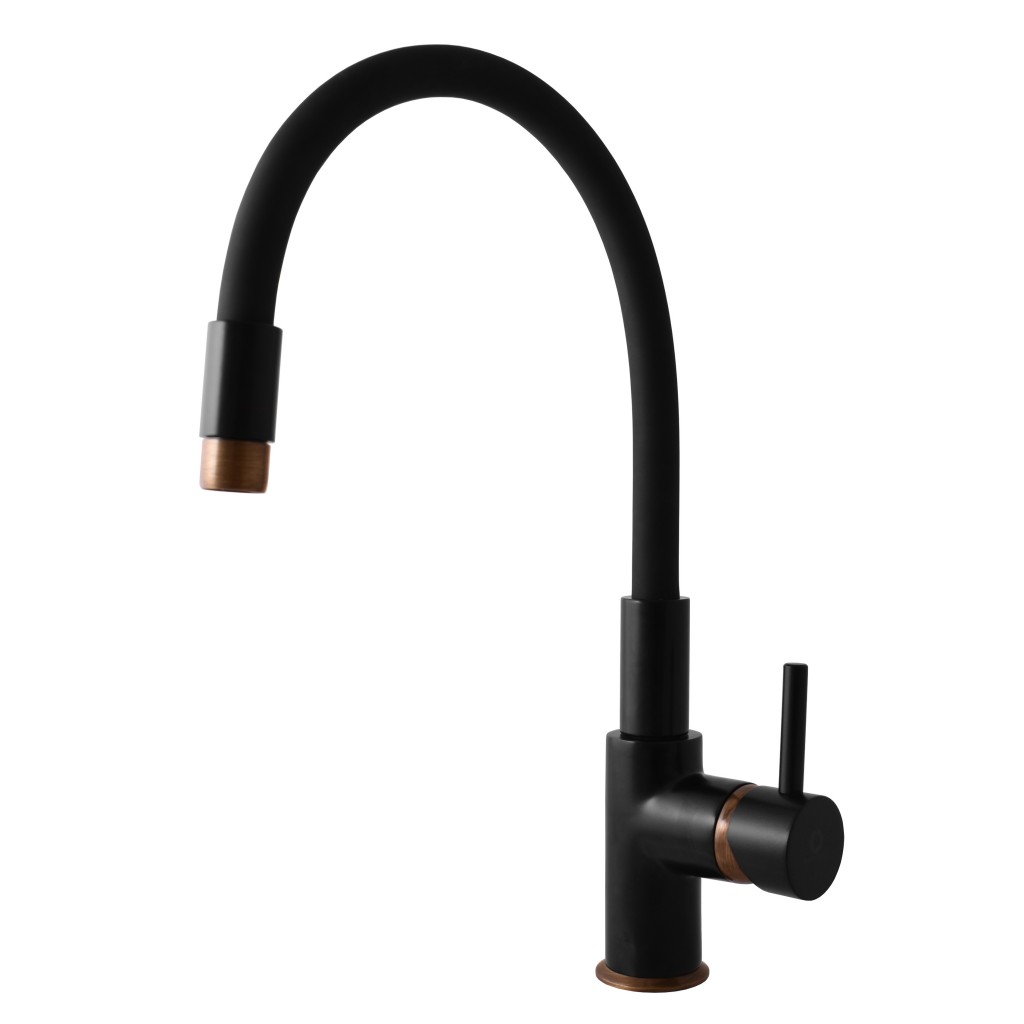 Vodovodní baterie dřezová stojánková s flexibilním otočným ramínkem.