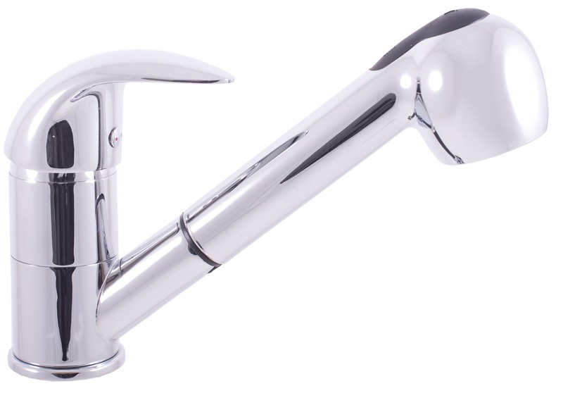 Vodovodní baterie dřezová stojánková s vytahovací sprchou pro nízkotlaké ohřívače.