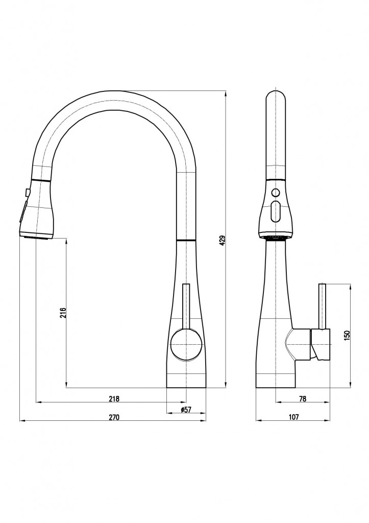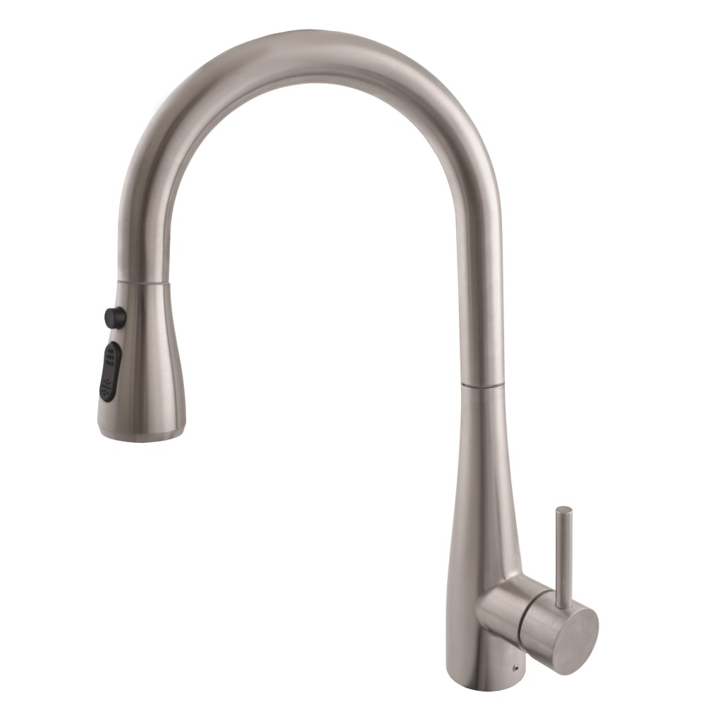 Vodovodní baterie dřezová stojánková s otočným ústím a vytahovací sprchou.