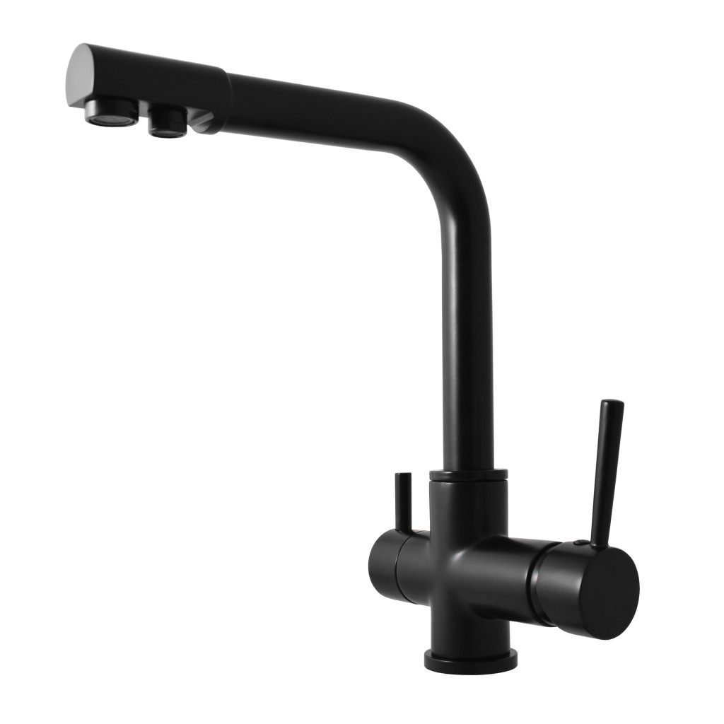 Vodovodní baterie dřezová stojánková s otočným ústím - pro dvě vody - pitnou a užitkovou - černá matná.