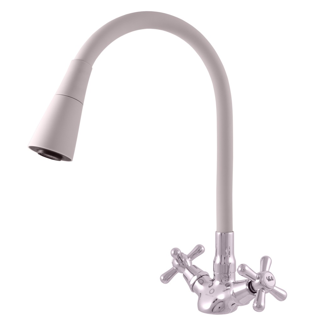 Vodovodní baterie dřezová stojánková s flexibilním otočným ramínkem se sprchou.