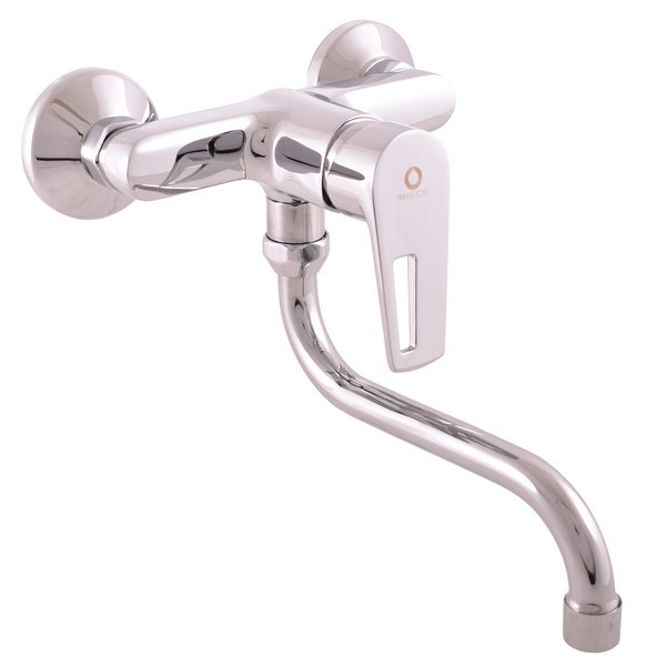 Vodovodní baterie dřezová/umyvadlová nástěnná s kulatým ramínkem 180 mm.